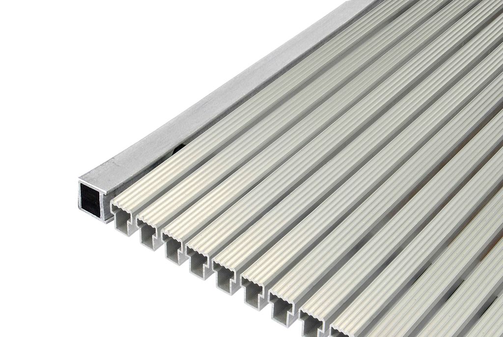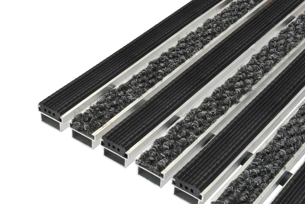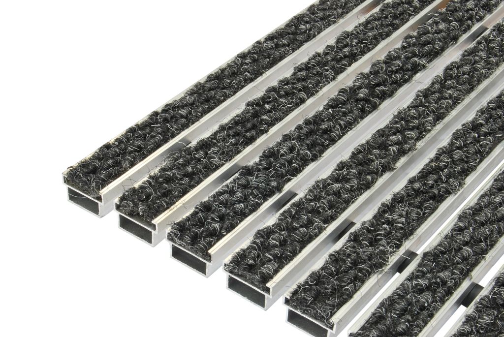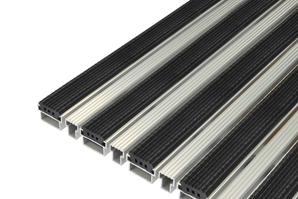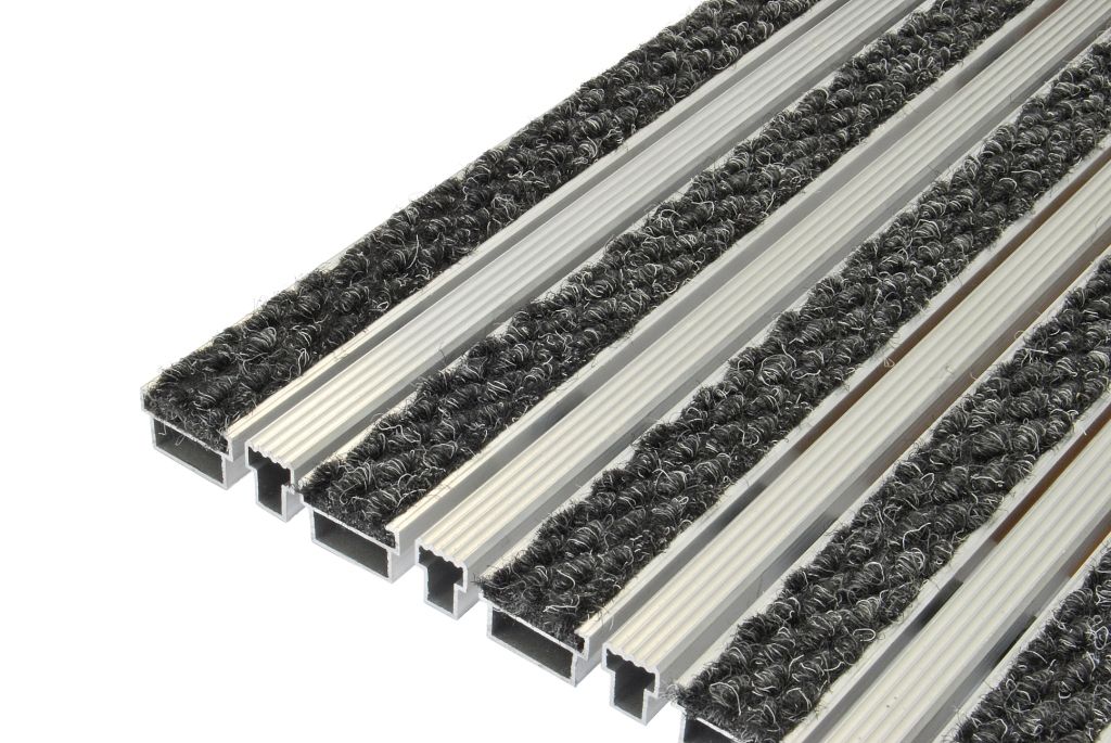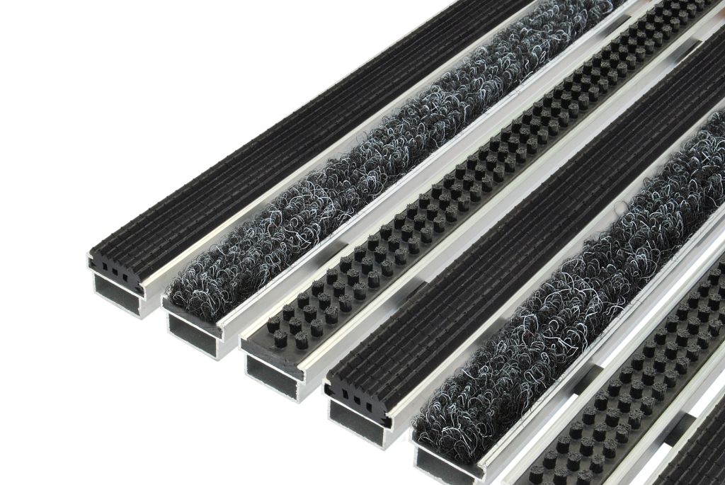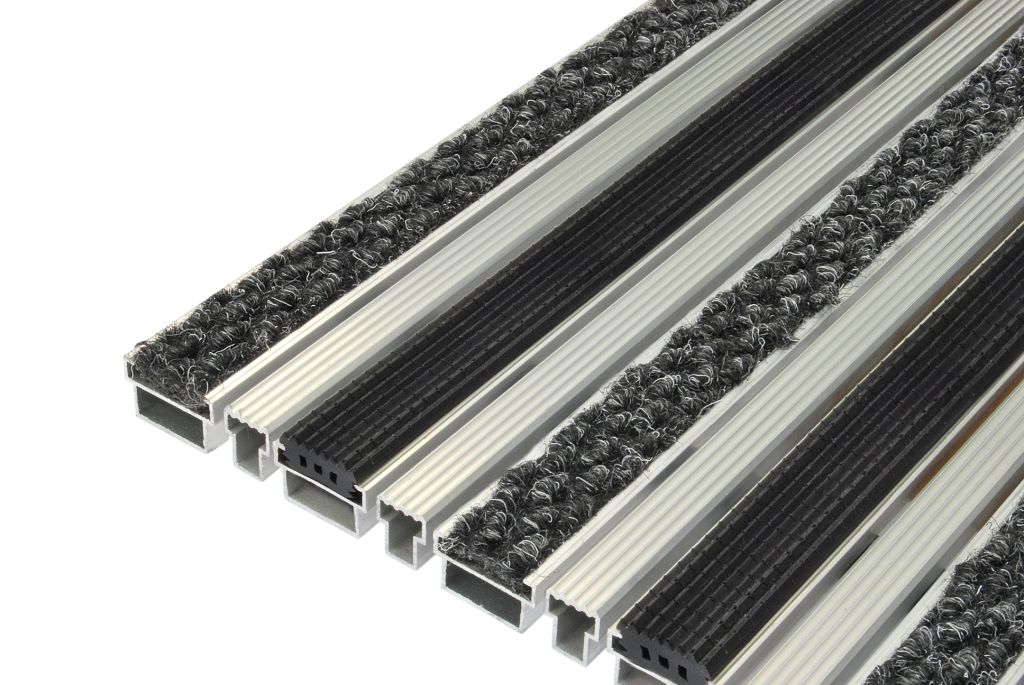 Грязезащитные алюминиевые решетки "Брайт" с чистящими элементами типа: Резина, Текстиль, Скребок, Титан, Бруш, предназначены для очистки от крупной грязи на входе.