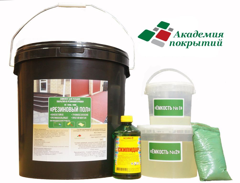 Комплект для самостоятельной укладки "Резиновый пол", рассчитан на площадь 1 м2 при толщине слоя 10мм.