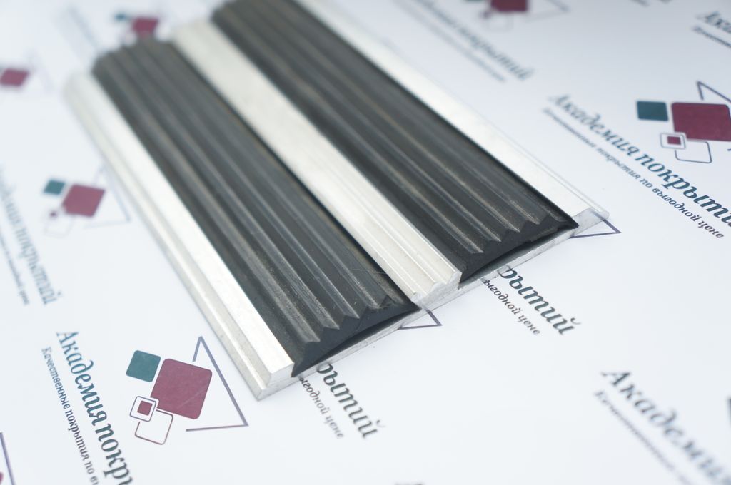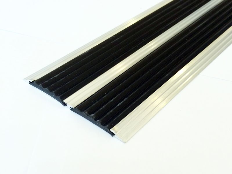 Полоса алюминиевая с двойной противоскользящей резиновой вставкой, против скольжения и как элемент грязезащиты.