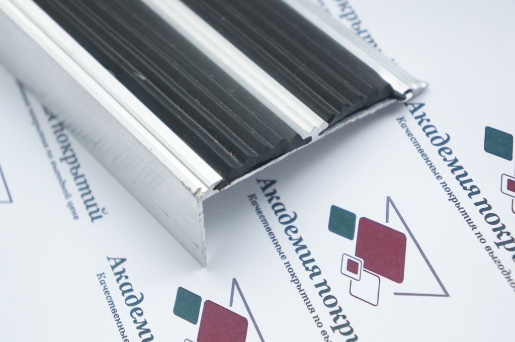 Угол порог противоскользящий алюминиевый с двойной резиновой вставкой против скольжения и как элемент грязезащиты.