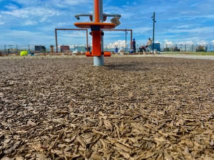 Выглядит эксклюзивно, эстетично и натурально. Представляет собой резиновую стружку размером от 10 до 50 мм, которая эффектно имитирует натуральную древесную кору или щепу.